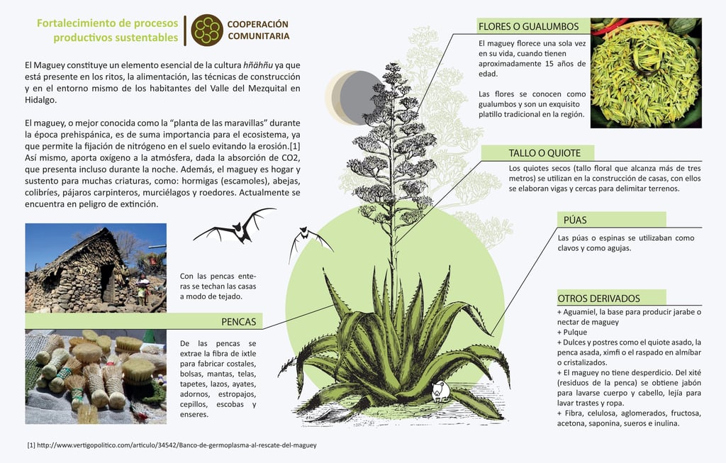 For centuries, the Hñähñu people have utilized maguey (agave), calling it the "tree of wonders." The ixtle fiber—extracted from agave lechuguilla and salmiana—was traditionally used for rituals, clothing, household items, construction, and generated sustainable local economy.