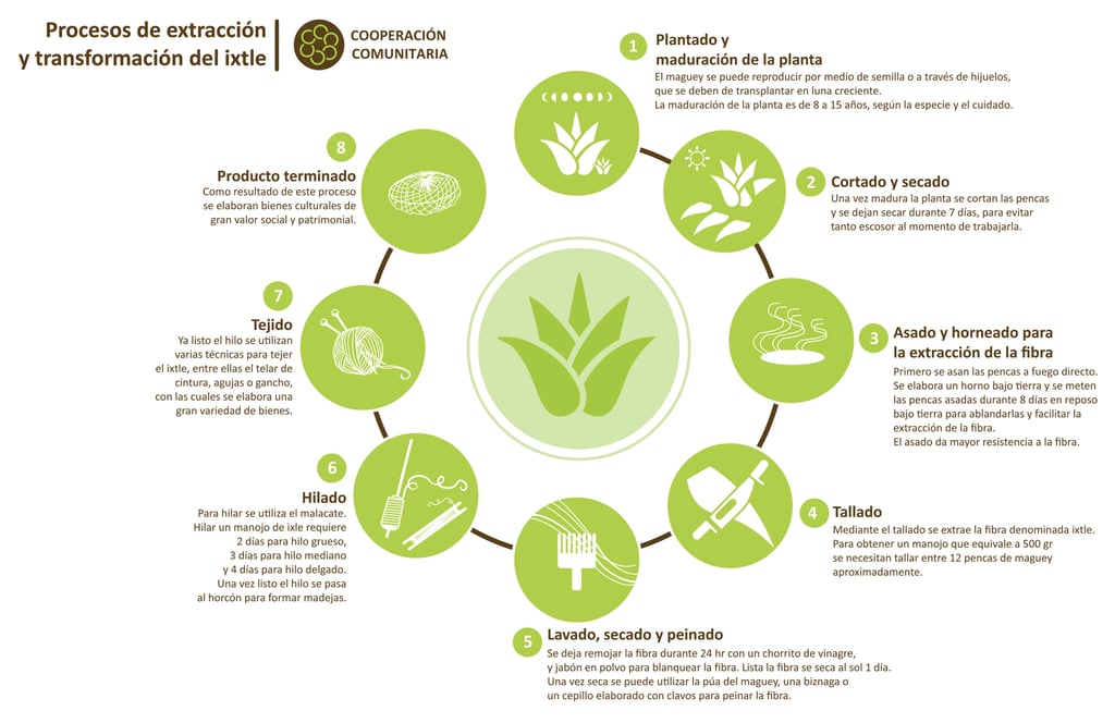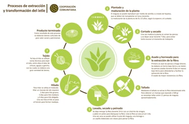 "Extraction and Transformation Process of Ixtle" (step-by-step illustration)
