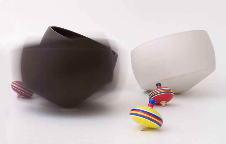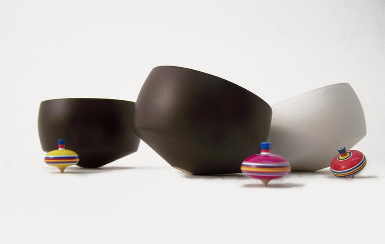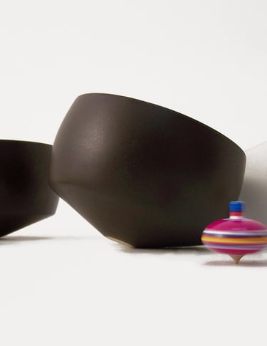 Primnola is a ceramic bowl inspired by the playful geometry and rotational movement of the traditional pirinola. The object reflects an intersection of function, cultural reference, and material experimentation within contemporary object design.