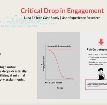 This engagement research case study on Luca EdTech identifies that the sharp drop in student motivation after the novelty effect is not a pedagogical issue nor a school adoption problem, but rather an experience design challenge: the platform relies on a passive, linear educational model driven by extrinsic rewards, which fails to sustain intrinsic motivation in the medium term.