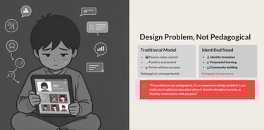 Drawing on frameworks such as Self-Determination Theory, Flow, and Hedonic Adaptation, the analysis shows that Luca falls short in providing identity, purpose, learner agency, and community—key elements for sustained engagement.