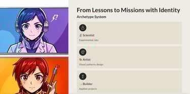 The proposal outlines a product transformation—from “consumable lessons” to identity-driven missions, learning archetypes, formative feedback, and collaborative dynamics— with the goal of improving retention, voluntary use, and perceived value for students, teachers, and families.